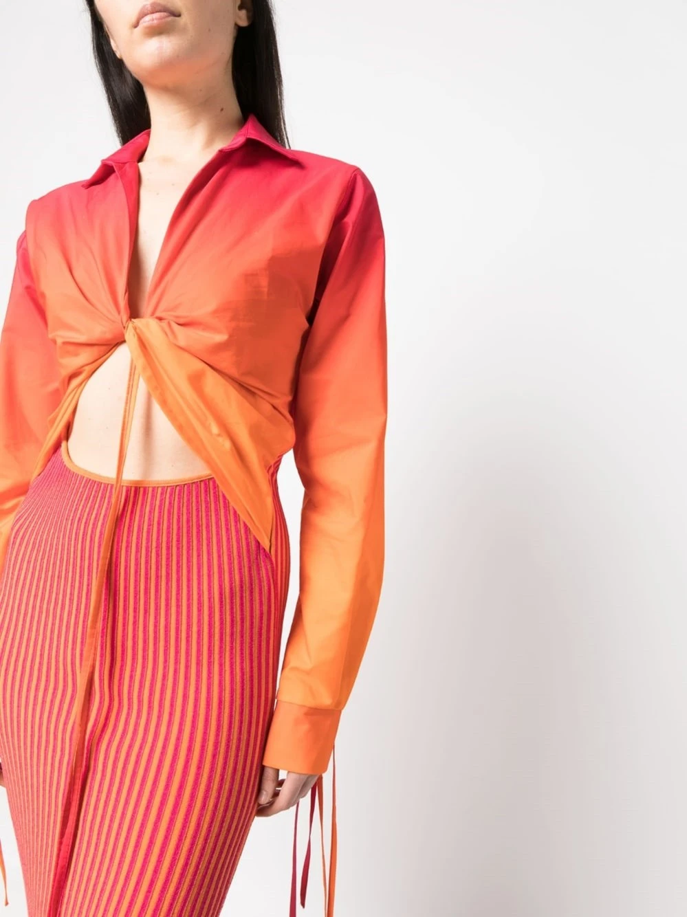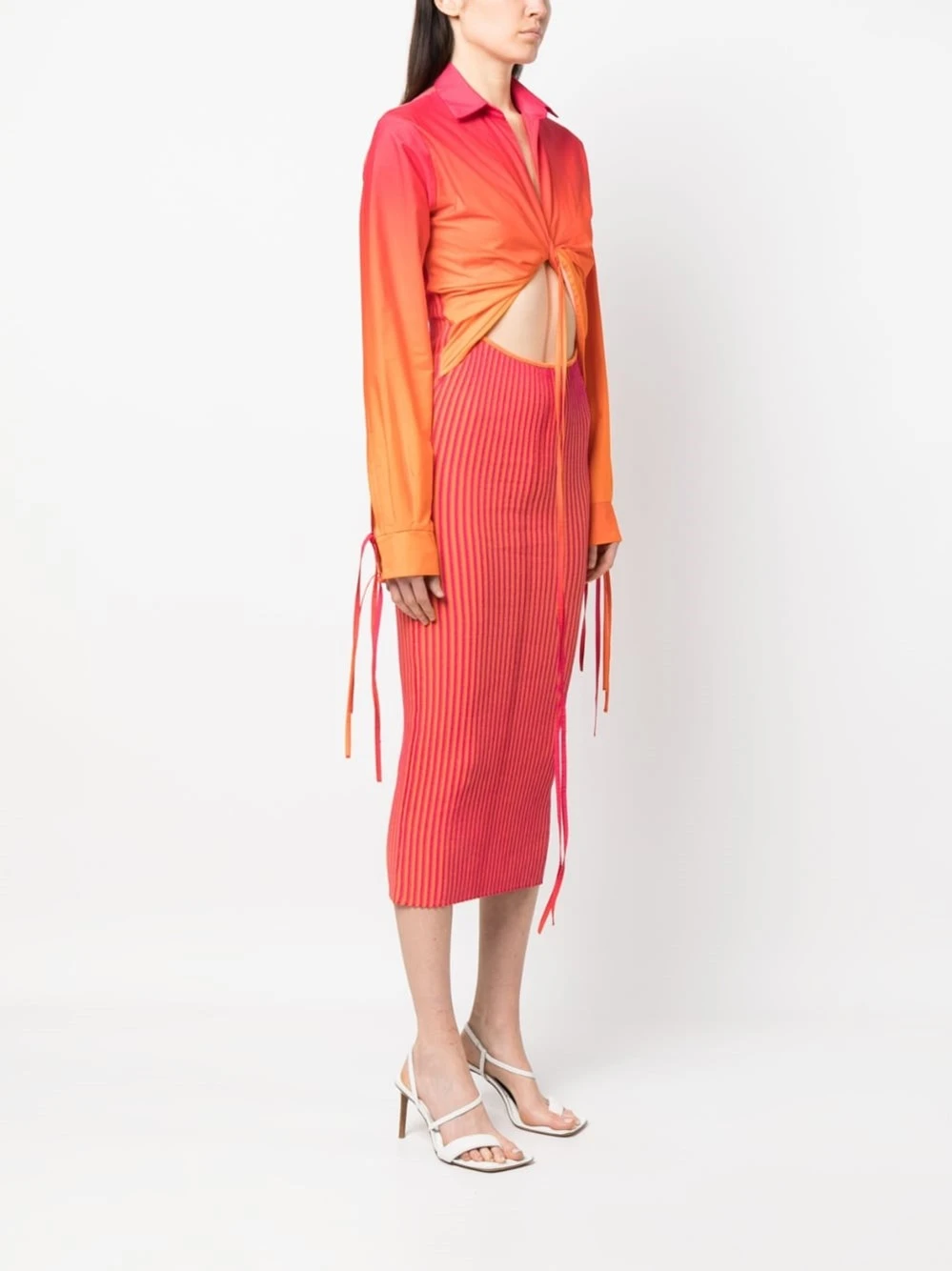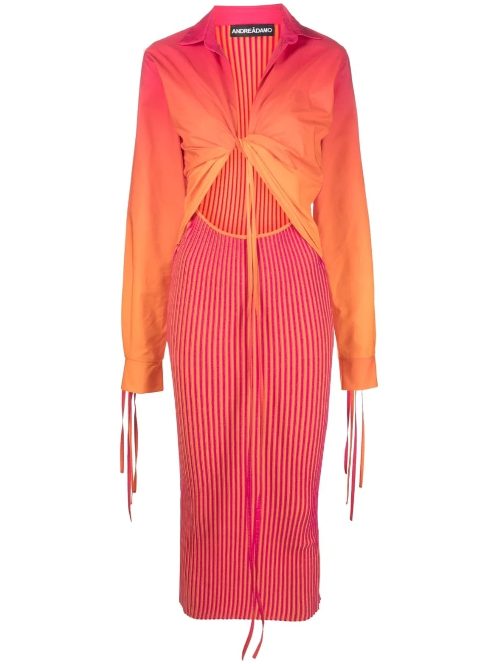 Abito Midi In Maglia A Costine Con Camicia In Cotone